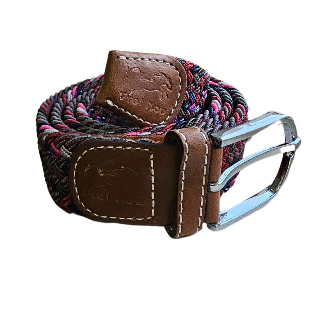 Cinto elástico colorido, super adaptável, tem em torno de 90cm podendo esticar até 35 cm, pode ser colocado em qualquer lugar da trama.